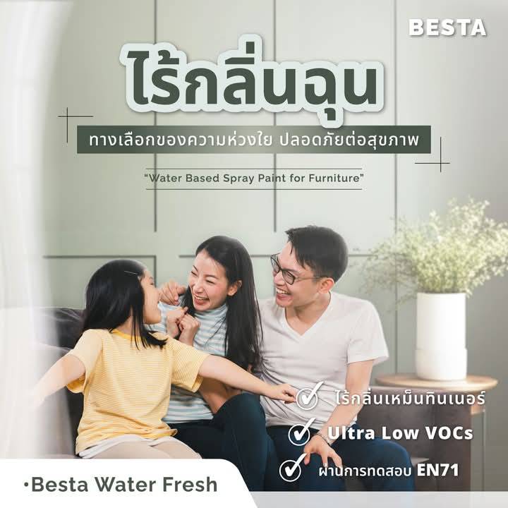 ข้อดีที่สำคัญที่สุดของสีพ่นเฟอร์นิเจอร์สูตรน้ำคือความปลอดภัย เนื่องจากมีปริมาณสารระเหย (VOC) ต่ำมาก ทำให้ไม่มีกลิ่นฉุนหรือเป็นพิษ ผู้ใช้งานจึงไม่ต้องกังวลเรื่องการสูดดมสารเคมีที่เป็นอันตราย และสามารถทำงานได้ในพื้นที่ที่มีการระบายอากาศจำกัดโดยไม่เสี่ยงต่อการเกิดอาการเป็นพิษ