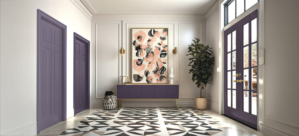 สีเปลือกมังคุดเป็นสีม่วงเข้มที่เต็มไปด้วยความสงบลึกลับ สะท้อนถึงความเป็นธรรมชาติอย่างร่วมสมัย เปรียบเสมือนการผสมผสานความอุดมสมบูรณ์ของธรรมชาติและความยั่งยืนของชีวิตเข้าด้วยกัน เป็นเฉดสีม่วงนี้สามารถดึงดูดความสนใจได้โดยไม่ต้องพยายาม ให้ความรู้สึกถึงความนุ่มนวลและอ่อนโยนที่แฝงไว้ภายใน เหมาะสำหรับพื้นที่ที่ต้องการความสงบและสบายๆ เช่น ห้องนั่งเล่น และห้องนอน เพิ่มความผ่อนคลายให้กับการออกแบบได้อย่างลงตัว